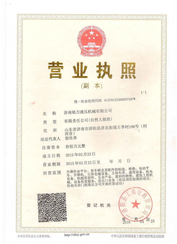 +濟南銘萬液壓機械有限公司【原濟南機械廠】,是全國制造液壓升降機、升降平臺的廠家,產(chǎn)品有八大系列六十多個品種,規(guī)格齊全、質(zhì)量穩(wěn)定、安全可靠、方便快捷;產(chǎn)品銷往全國各地,深受用戶好評。升降機廠家技術力量雄厚,產(chǎn)品設計先進、工藝成熟、實驗檢測手段完善,“質(zhì)量第一,用戶至上”是我們的宗旨。 本公司采用先進的管理手段,嚴密的質(zhì)量監(jiān)控體系和良好的售后服務隊伍為我們的產(chǎn)品走向市場創(chuàng)造......